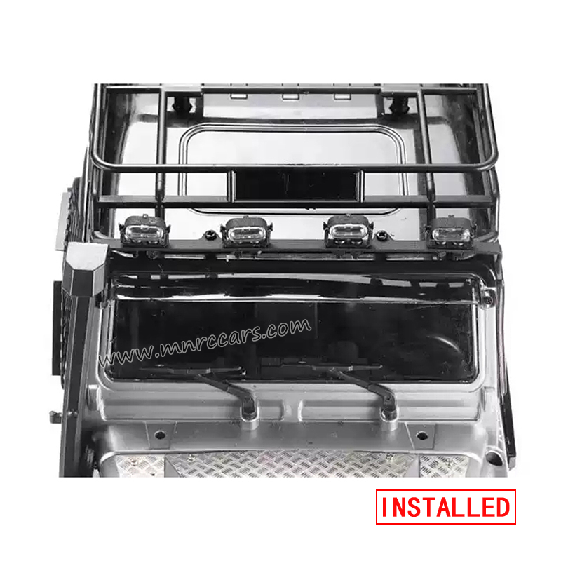 This model is available in both Semi-truck(mn-333)and camper (mn-333S) versions, with multiple color options. The front cab is made of metal with a refined paint finish, enhanced by details such as a roll cage, bumper, snorkel, side mirrors, and a full-size spare tire. The lighting system is also impressive, featuring functional headlights and turn signals for a more realistic driving experience.